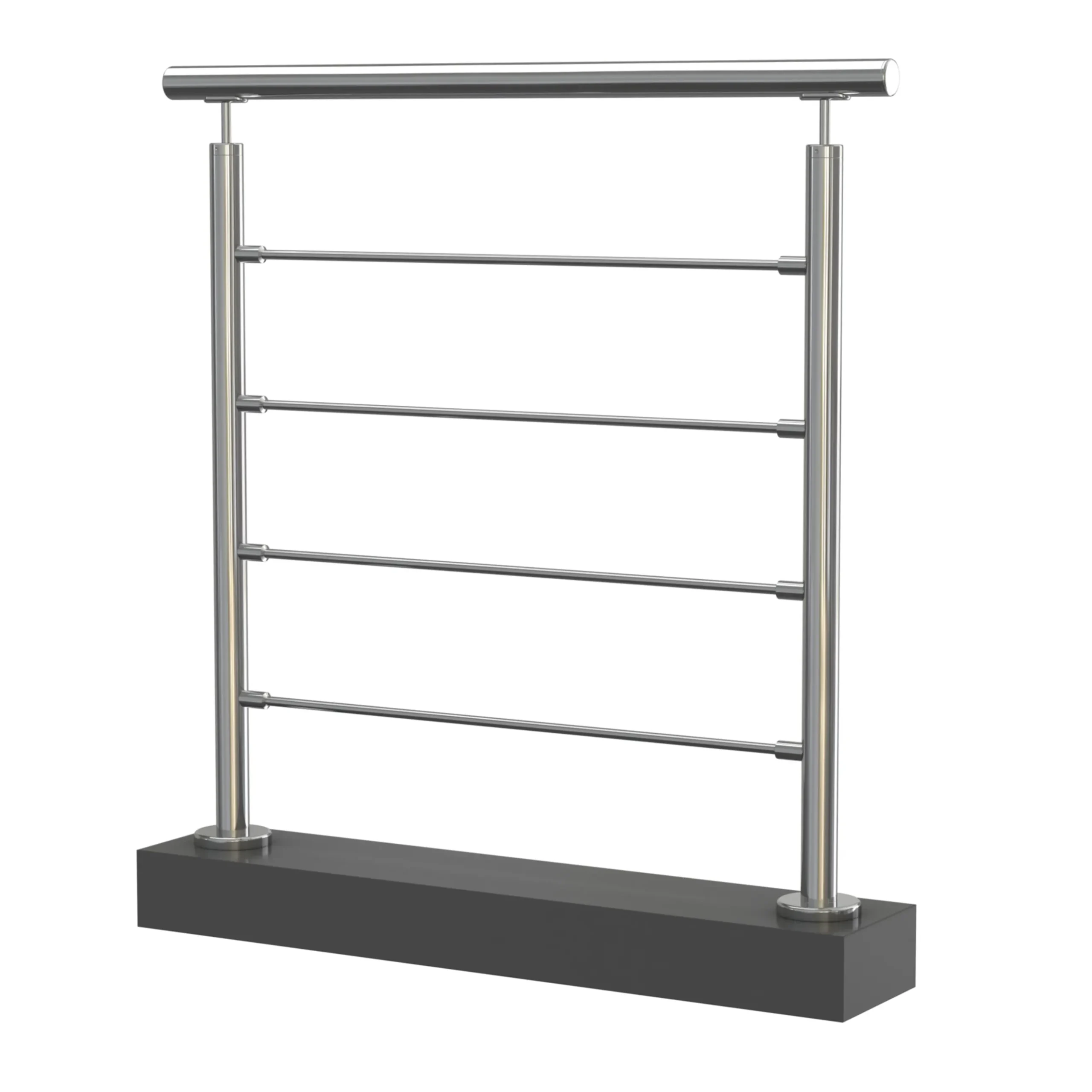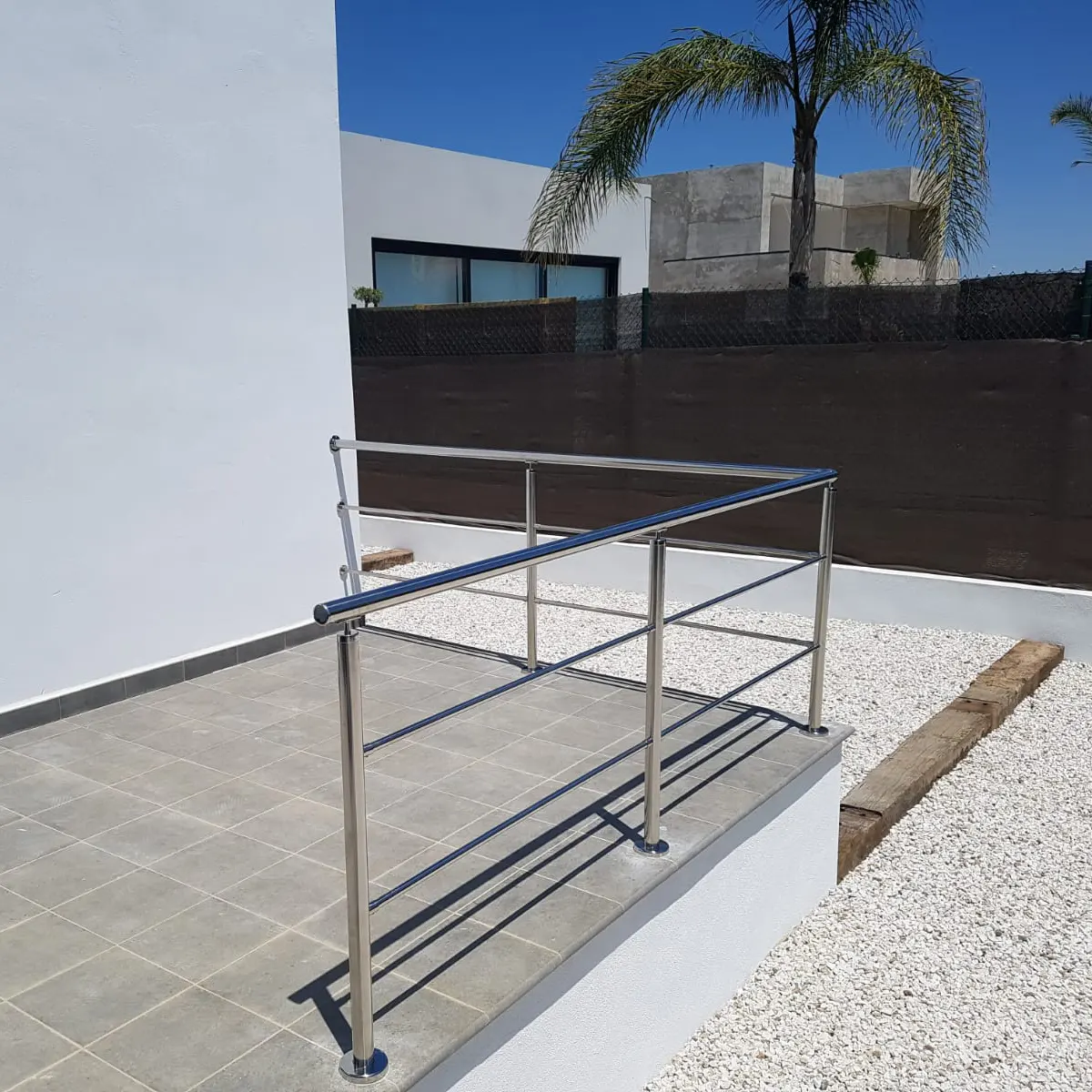 Los precios mostrados en la web son estimaciones basadas en tramos rectos horizontales de 5 metros con cinco postes con anclaje a suelo y pasamanos tapados en los extremos. Todo en calidad AISI 304 y acabado pulido (brillo).